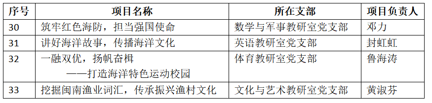 近日,中共厦门海洋职业技术学院委员会公布了2024-2026学年党支部工作“立项活动”校级立项项目名单。公共教育学院各党支部深入学习贯彻习近平总书记关于党的建设的重要思想,聚焦增强党组织政治功能和组织功能,围绕学校中心工作、党建重点任务要求、党建工作薄弱环节和重难点问题,认真筹备、精心设计、积极申报,经评选研究,我院推荐申报的4个项目获立项。