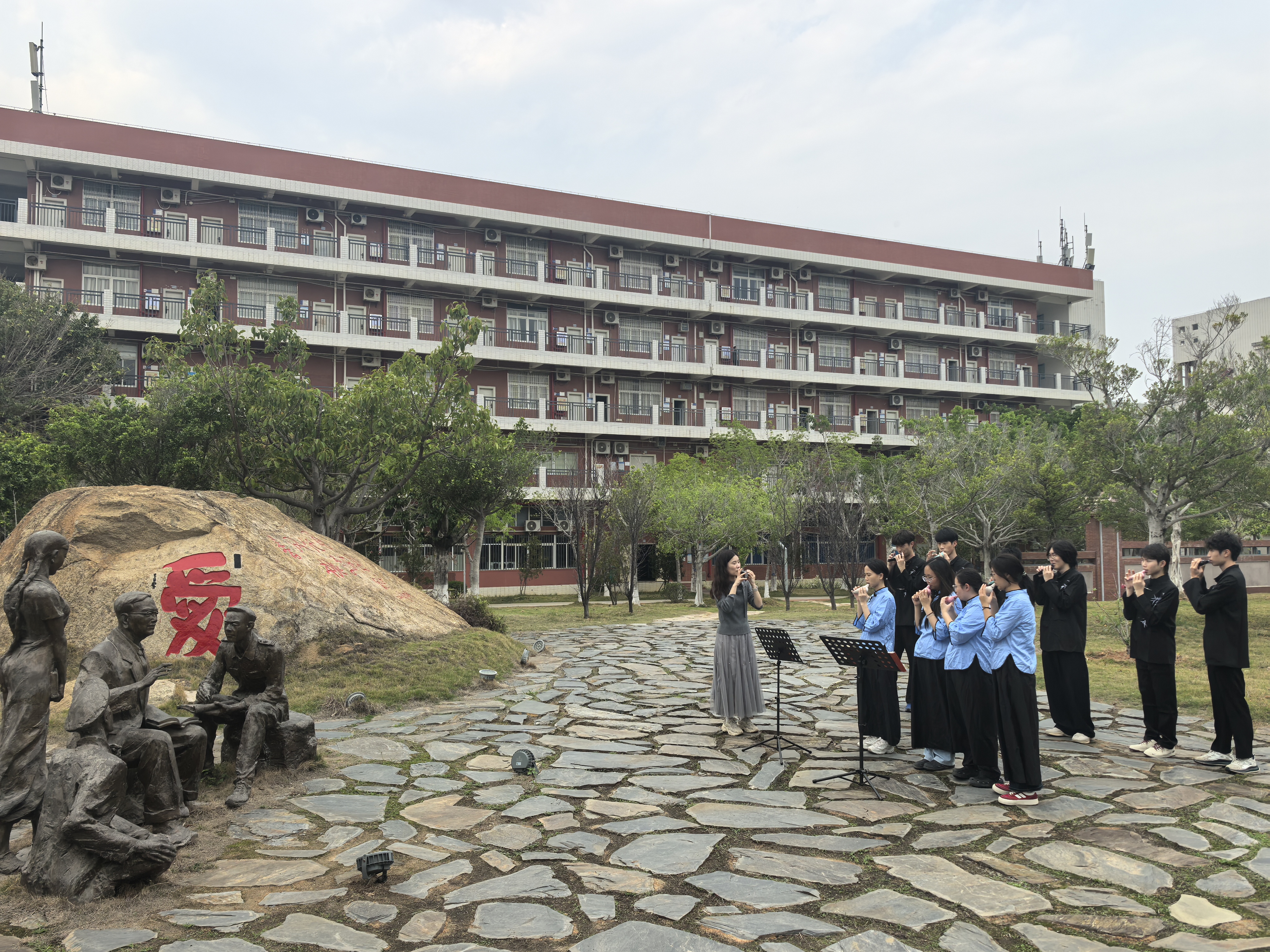 师生共同追忆陈嘉庚先生倾资兴学、赤诚爱国、坚守祖国统一的一生,“华侨旗帜,民族光辉”彰显了先生的精神风范。师生现场共同演奏陶笛曲《望春风》,以悠扬乐声寄托哀思,传递先生期盼两岸同心的心愿,表达两岸同胞血脉相连的家国情怀。师生依次向陈嘉庚先生像敬献菊花、鞠躬致礼,并肃立默哀。