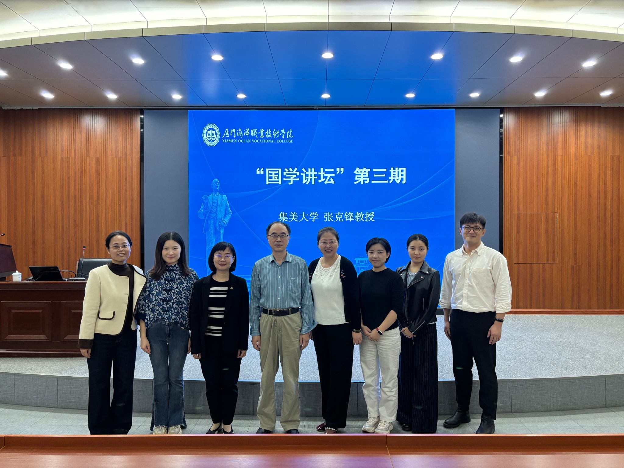 11月11日,我院举办2025年第三期“国学讲坛”。集美大学海洋文化与法律学院张克锋教授应邀作题为《中国古代文学中的海洋观念》的专题讲座。公共教育学院副院长张娴静出席活动并致辞,文化与艺术教研室教师代表及2025级学生共计200余人参加了本次讲座。