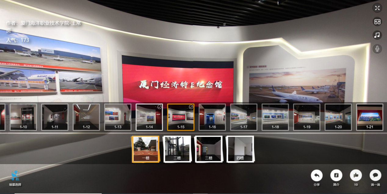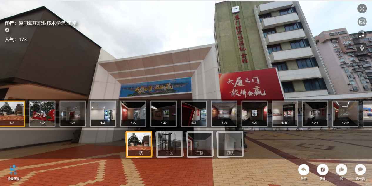 师生团队运用虚拟现实等数字技术,通过撰写拍摄脚本、实地考察、多角度拍摄、创新交互热点、制作虚拟仿真场景等活动,全景再现了厦门经济特区纪念馆红色资源,生动诠释了特区精神在厦门的鲜活实践。该作品不仅在技术上展现了高水平的制作能力,更在内容上体现了对中国共产党人精神谱系的深刻理解与传承。