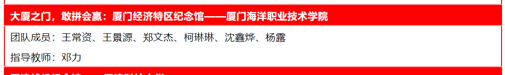 近日,第三届全国大学生红色全景资源创意展示大赛结果揭晓,由公共教育学院教师邓力指导,信息工程学院数媒5201学生王常资、王景源、郑文杰、柯琳琳、沈鑫烨、杨露创作的VR作品《大厦之门,敢拼会赢:厦门经济特区纪念馆》脱颖而出,喜获该项赛事三等奖,这是福建省唯一获奖的高职院校。
