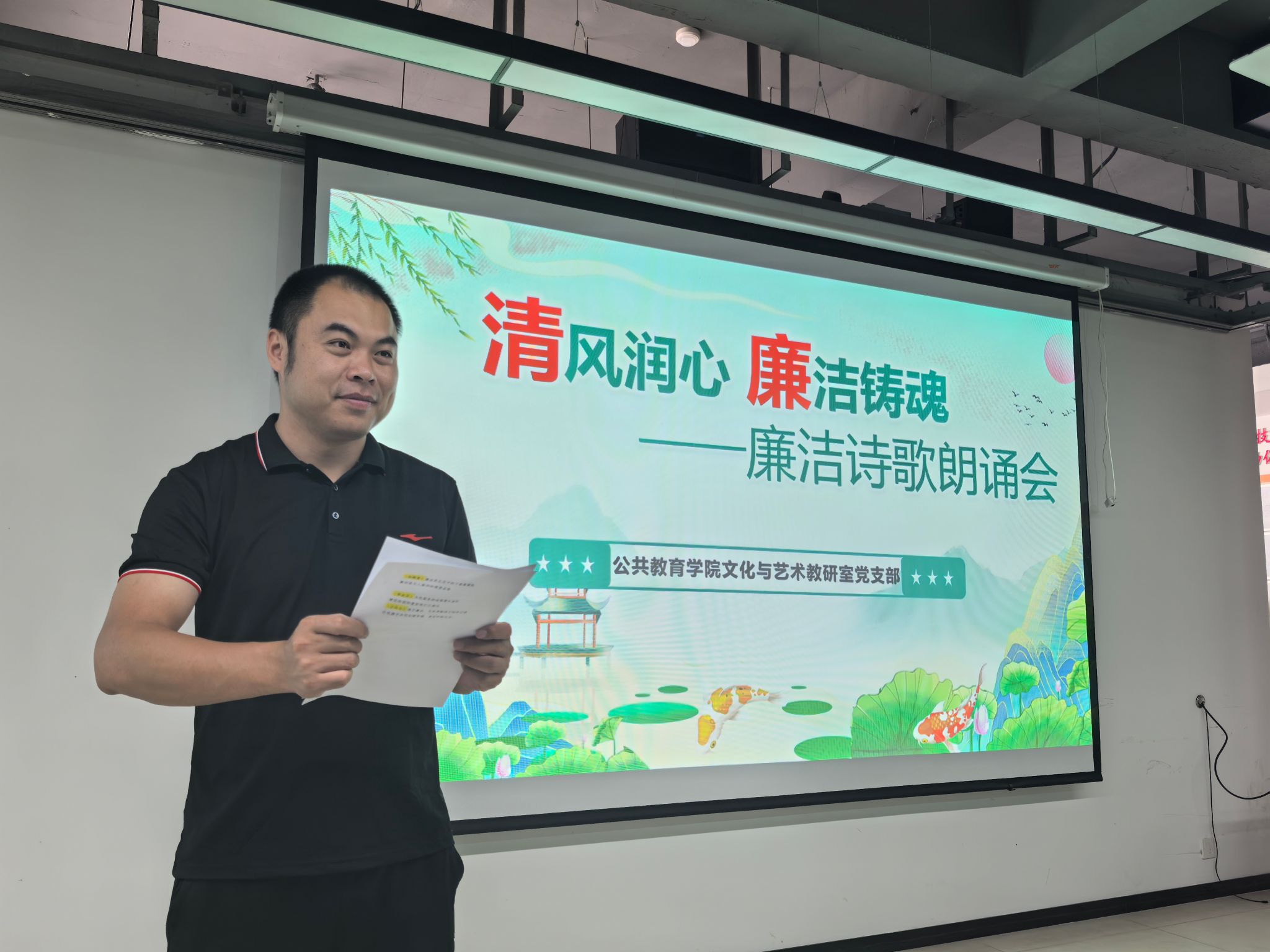 莲香沁五月,诗韵涤尘埃。2025年5月27日,公共教育学院文化与艺术教研室党支部举办“清风颂廉”校园廉洁诗会本次活动以“清风润心,廉洁铸魂”为主题,以诗歌为舟,载清风正气,支部党员共享一场涵养品格的文化之宴。