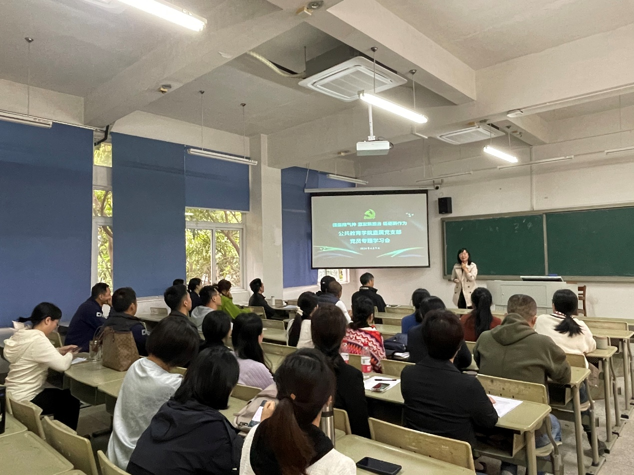 公共教育学院直属党支部以学习“二十大党章新知识”“习近平论教育工作”为主题,学习党的理论和路线方针政策,深刻认识中国特色社会主义制度的优势,不断增强对马克思主义、共产主义的坚定信仰,增强对中国特色社会主义的坚定信念,增强对实现中华民族伟大复兴的坚定信心,使全体教师党员更加清醒地认识到自己的责任和使命,为推动教育事业的发展贡献自己的力量。