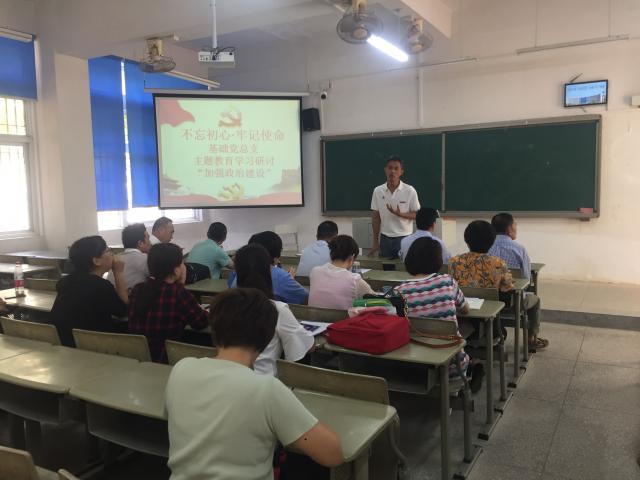 1022日下午,基础党总支召开“不忘初心、牢记使命”主题教育第三专题集中学习大会,围绕“加强政治建设”专题开展学习研讨。会议由党总支委员、基础部副主任柯春梅主持。