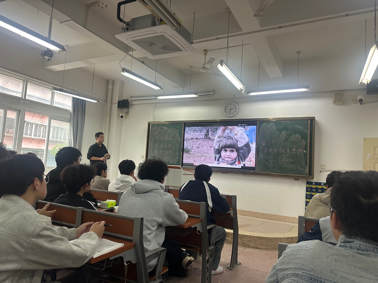 课堂上,邓力老师以“阅兵”视频对比开篇,迅速激发学生探究兴趣。授课围绕 “为何强军、军强在哪、强军何用” 核心逻辑,结合国际格局、热点事件与信息化装备案例,系统阐释强军思想的理论精髓;通过小组讨论,分析正反案例等互动形式,打破传统理论课单向灌输模式,让课堂氛围活跃高效。课程最后,教师串联知识脉络,升华 “强国必须强军,军强才能国安” 的价值理念,实现理论学习与价值引领的深度融合。