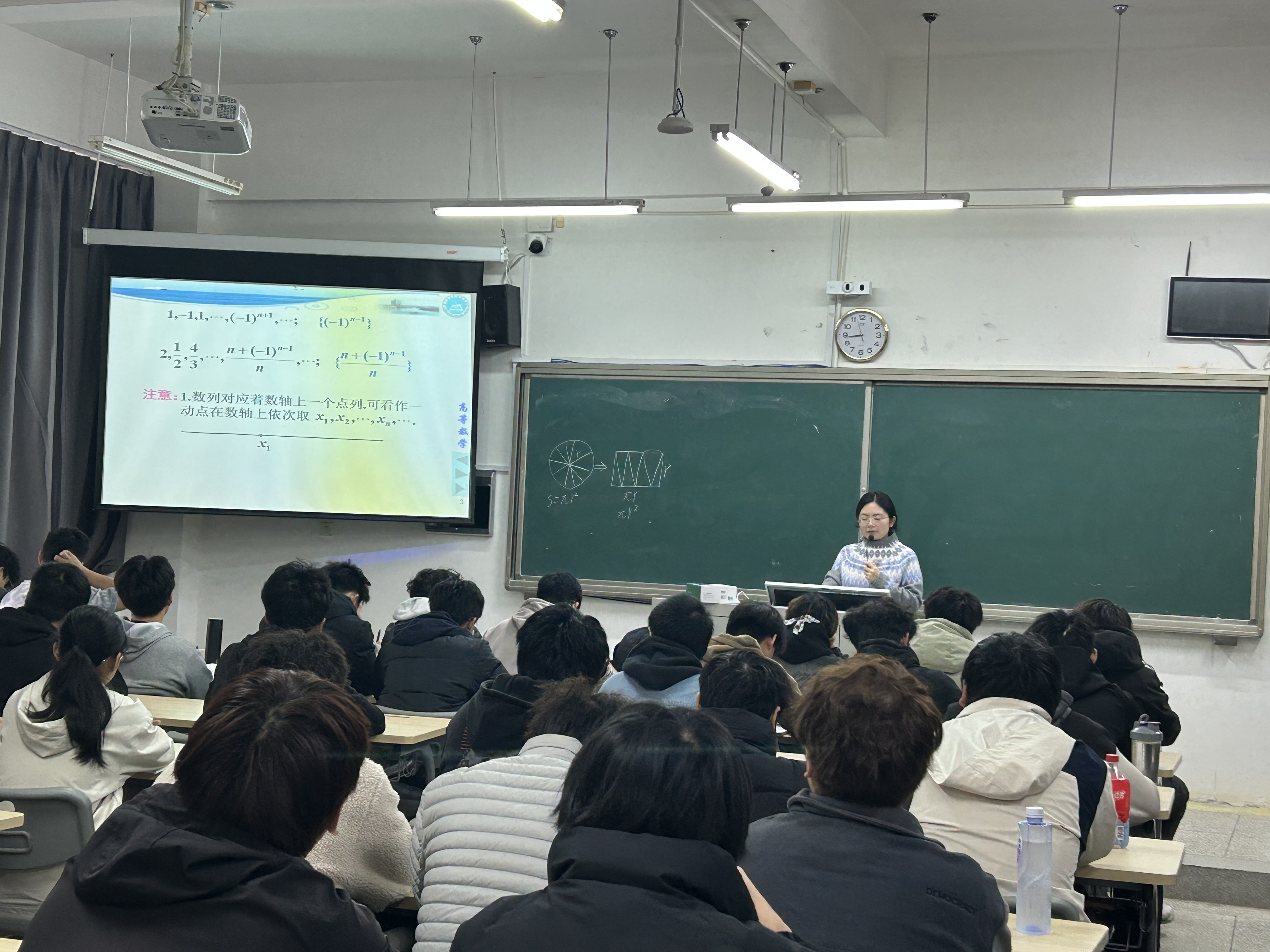 教学中,陈语老师将科学精神的塑造与数学思维的训练相融合。她通过学生分享割圆术、截丈问题、芝诺悖论三个经典历史案例,启发学生从具体问题中自主发现“无限逼近”的共同思想线索,生动演绎了数学思维中从特殊到一般的认知跃迁过程。在这一过程中,她将“求真探索、严谨逻辑、历史辩证与批判创新”的思政元素,自然融入从具体案例的剖析到普遍原理的归纳之中,这不仅使学生深刻理解了极限概念的本质,更有力地培养了其理性精神、科学归纳能力与历史眼光,致力于培育具有扎实数理基础、严谨思维品质和持续探索精神的复合型人才。