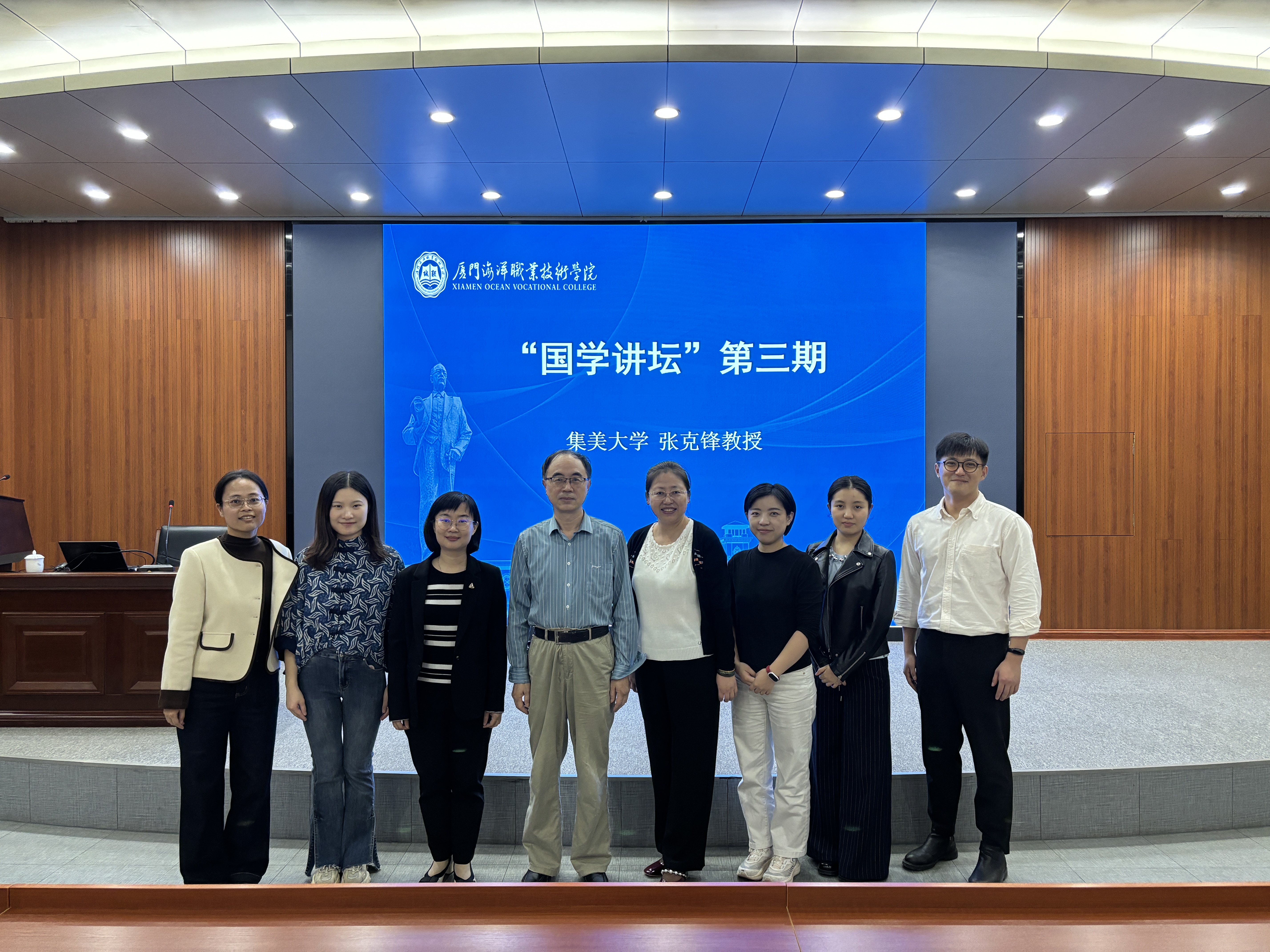 11月11日,我院举办2025年第三期“国学讲坛”。集美大学海洋文化与法律学院张克锋教授应邀作题为《中国古代文学中的海洋观念》的专题讲座。公共教育学院副院长张娴静出席活动并致辞,文化与艺术教研室教师代表及2025级学生共计200余人参加了本次讲座。