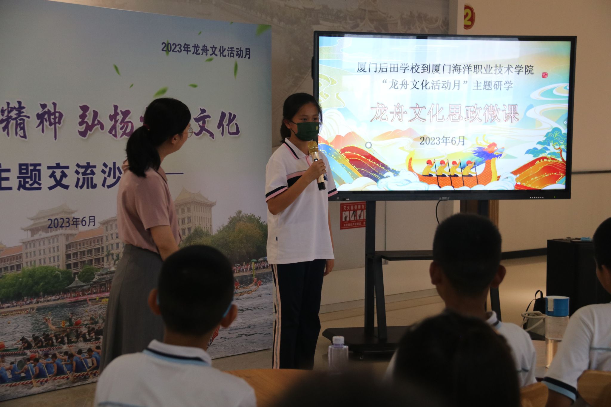 我校作为第一批入选全国高职院校体育工作“一校一品”(龙舟运动)示范基地、福建省高校中华优秀传统文化传承基地,于今年6月举办龙舟文化月主题活动。近日,厦门市后田学校师生应邀到校开展龙舟文化月主题研学活动。