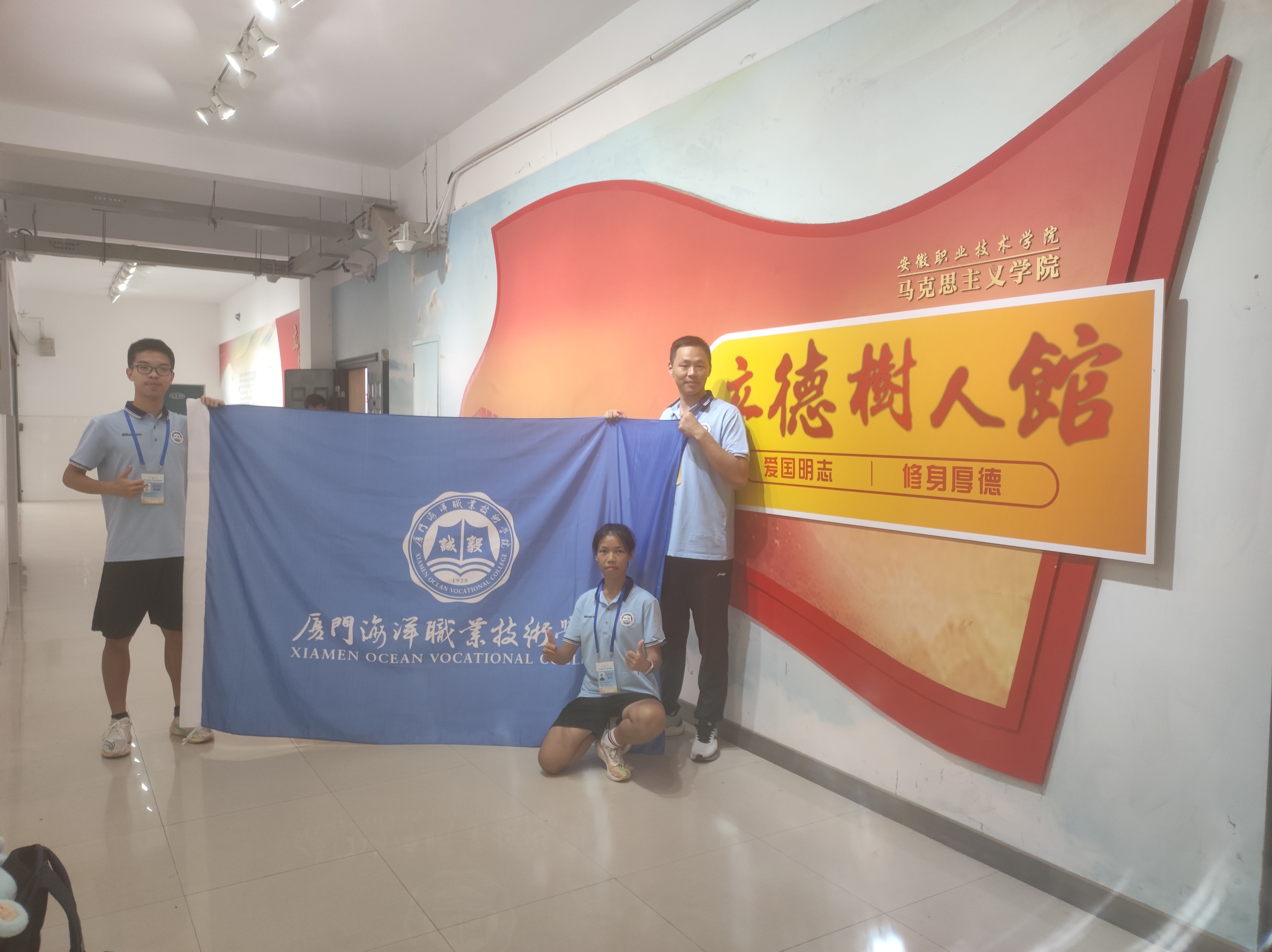 赛后,教练带领队员与其他兄弟院校交流学习,参观了安徽职业技术学院体育馆、立德树人馆设置的主题教育学习展,该校为促进体育事业与主题教育、思政教育深度融合,特别在让体育更好发挥立德树人、以“体”育人的作用成效,让队员们受益匪浅。
