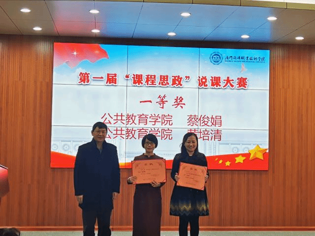 2021年1月13日,为了一进发挥课堂教学育人的主渠道作用,学校于翔安报告厅组织了首届“课程思政”说课大赛决赛。我院数学教研室蔡俊娟、英语教研室黄培清两位教师包揽了本次比赛一等奖。