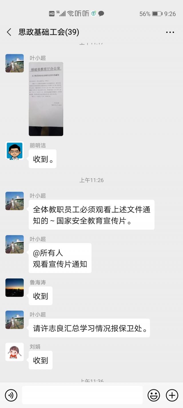 全体教职工在线上观看后纷纷表示,当前,在举国上下抗击新冠肺炎疫情的决胜时刻,更加深刻地认识到维护国家安全,是每个人都不可推卸的一份责任。今后将继续加强理论学习,增强全民防范意识和维护国家安全的能力,用实际行动维护国家和自身安全。在课堂教学中把维护国家安全意识传授给学生,增强海院学子维护国家安全的责任感和使命感。