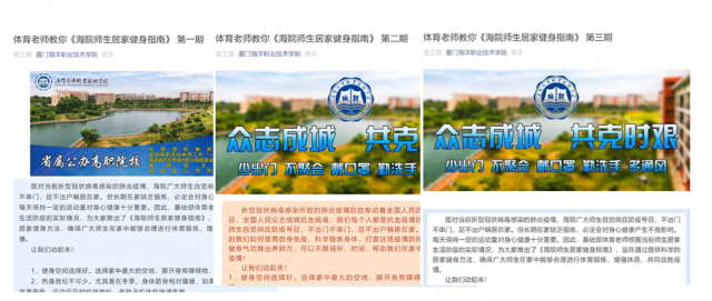 体育教研室主任、党员教师鲁海涛负责教研室每日疫情汇总上报工作,作为党支部副书记和党建e家管理员,积极通过党建e家平台发布消息,号召党支部党员积极学习上级有关文件,鼓励大家参加到疫情的阻击战中,个人也申请加入学院党员突击队。在教研室工作中,以广大师生居家锻炼和本学期体育课程教学为出发点,组织教研室老师积极讨论,对体育课程计划制定调整预案,推出居家健身方案,满足广大师生居家健身需求。目前已经通过学院微信官方网站发布《海院师生居家健身指南》三期,鲁海涛老师也积极鼓励教研室其他老师带头锻炼,并亲自录制和发布健身视频,指导广大师生进行锻炼。