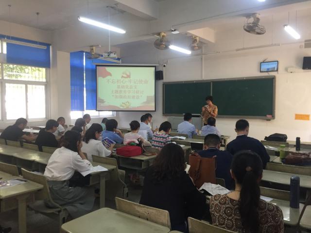 10月22日下午,基础党总支召开“不忘初心、牢记使命”主题教育第三专题集中学习大会,围绕“加强政治建设”专题开展学习研讨。会议由党总支委员、基础部副主任柯春梅主持。