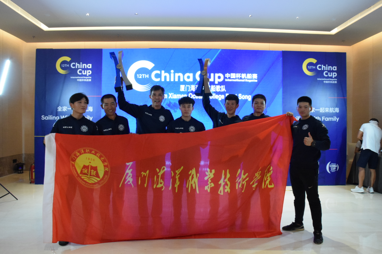 歌队丝毫没有“怯场”,有着丰富比赛经验和强劲实力的陈和池、曾志聪两位船长带领船员们夺得巴伐利亚37组亚军和IRC-C组季军,捧回两座奖杯。一所高校派出两支帆船队参赛都夺得奖杯,这在历届中国杯帆船赛中尚属首例!