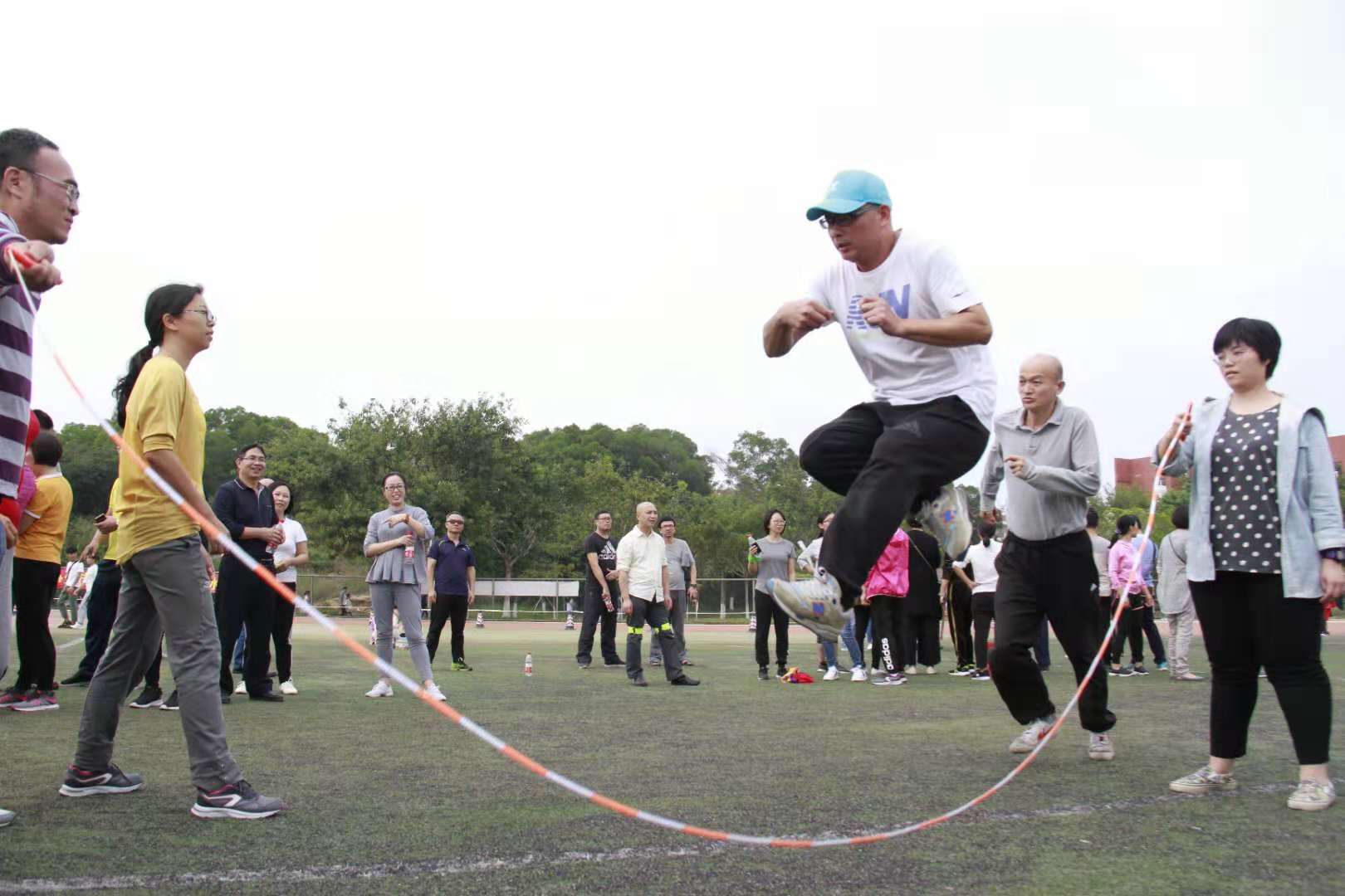 通过这次运动会,我们看到了平时站在讲台前的老师们的另一面风采。胜利时,他们也会如孩子般在场上欢呼雀跃,在赛场上尽情挥洒着激情。在欢声笑语中,运动会圆满结束了。